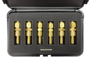 To be used as a dry gas meter calibration reference, the CleanAir Critical Orifice offers 1/2″ brass quick connects with an internal synthetic sapphire orifice disk. A set contains five orifices ranging from 10- 34 LPM, as prescribed in EPA Method 5. Each set comes complete with a dust-proof/moisture proof lifetime guaranteed carrying case. Individual calibration sheets are also included.