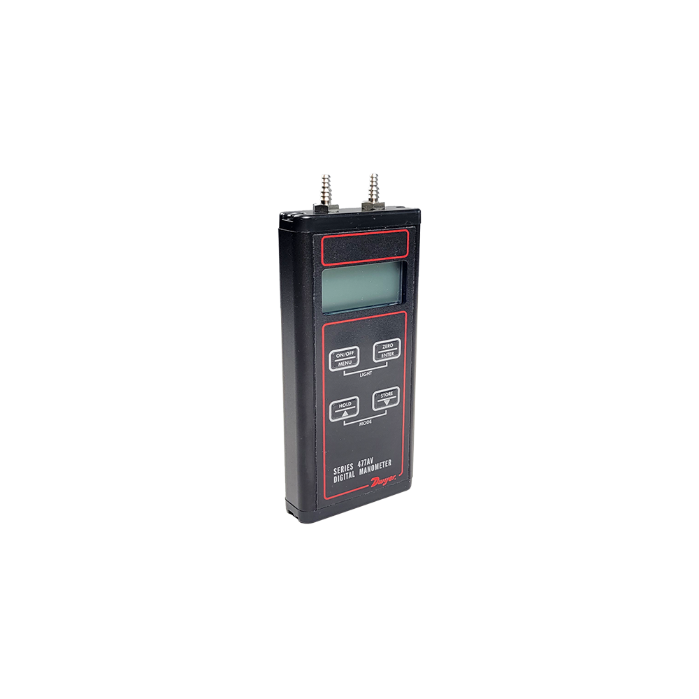 The Dwyer/DwyerOmega 477AV-00 Handheld Digital Manometer offers pressure, flow, and air velocity measurements. With a velocity range of 8009 fpm, it has adjustable zero and span values and a damping feature to compensate for reading fluctuations. NIST-Traceable before and after calibrations for CleanAir Kodiak (required for EPA Method testing).
